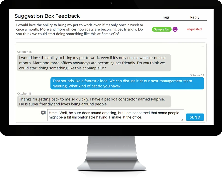 Employee Suggestion Box with Anonymous 2-way Conversation