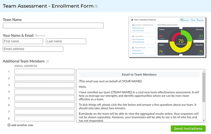 Now you can make your teams more effective with our leading team assessment survey tool. Our team assessment survey identifies strengths and weaknesses in your teams. Improve trust, skills, and team effectiveness with this team evaluation tool.