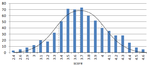 When we look at engagement or satisfaction survey results across a large number of different organizations, we find that scores on survey questions tend to follow a normal distribution. This means that scores follow a fairly predictable bell-curve pattern.